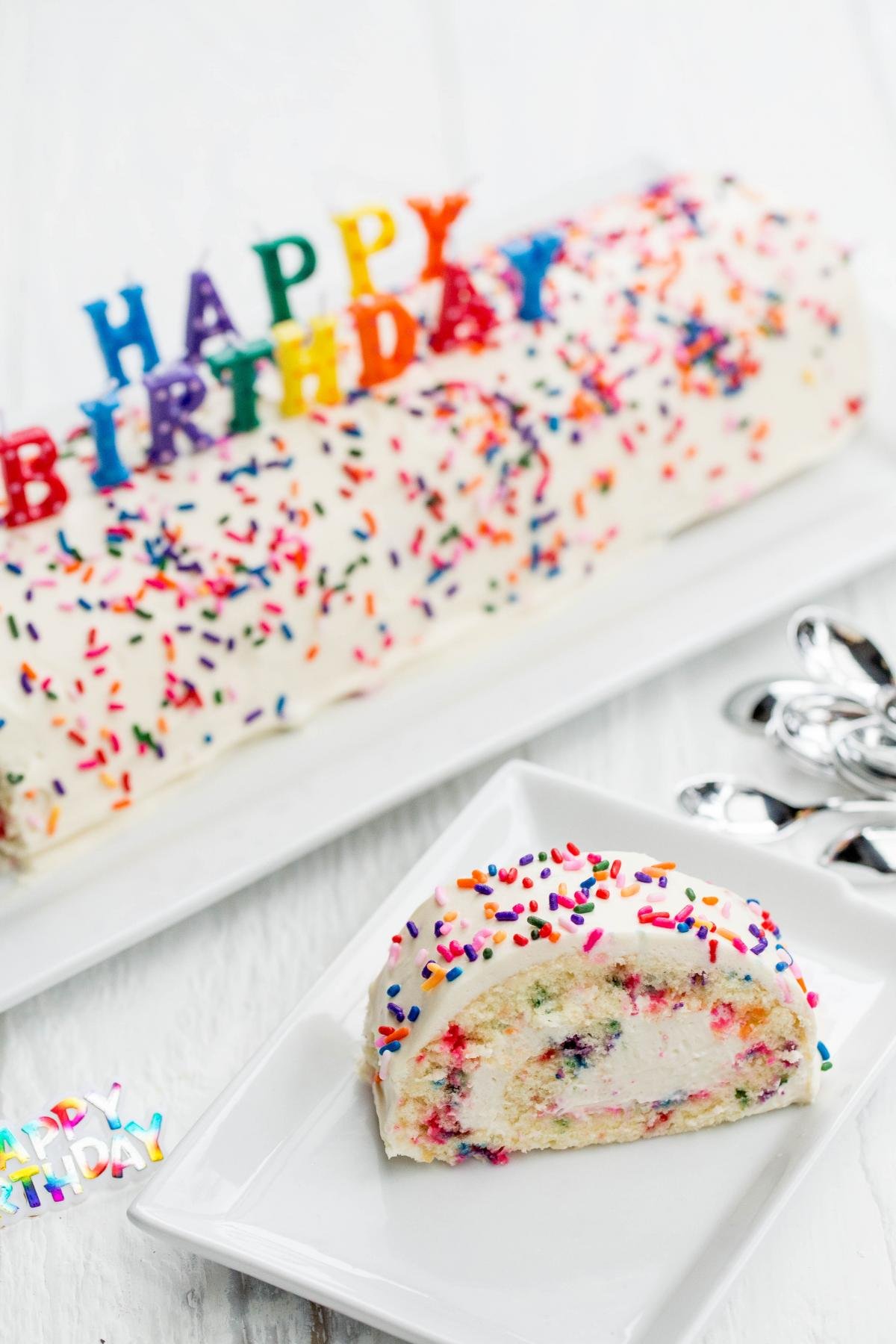 Ce roulé de gâteau d’anniversaire est le moyen idéal pour célébrer une nouvelle année. À chaque fois, au moins l’un de mes garçons le demande pour son jour spécial chaque année. Mais honnêtement, j’utilise cette recette de gâteau pour bien plus d’occasions que des anniversaires. De Noël à Pâques en passant par les potlucks, vous pouvez facilement adapter les décorations et rendre le gâteau approprié à presque toutes les célébrations.