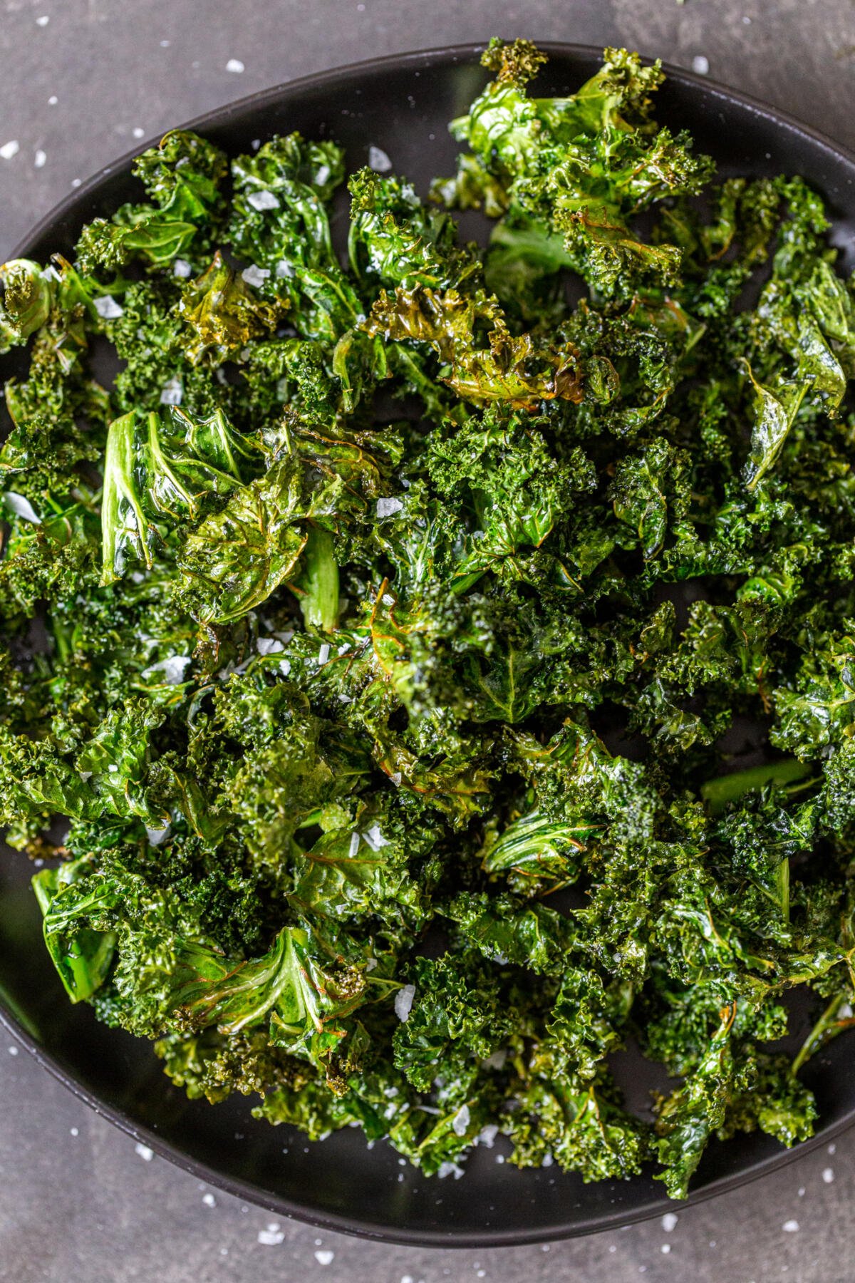 Avant ces chips, j’utilisais principalement le chou frisé dans les soupes, les salades et les quiches ou les bouchées aux œufs, occasionnellement, mais j’ai pensé : pourquoi ne pas manger le chou frisé seul ? Mon appareil de cuisine préféré (l’air friteur) m’a inspiré et j’ai décidé de mélanger le chou frisé à mes assaisonnements préférés, de les faire frire à l’air frit et, voilà, ces délicieuses chips de chou frisé croustillantes sont apparues !