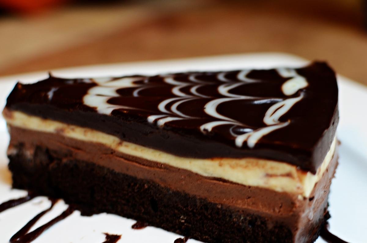 - Refroidir et verser sur la couche de cheesecake au chocolat. Réfrigérer pendant que vous préparez le glaçage.