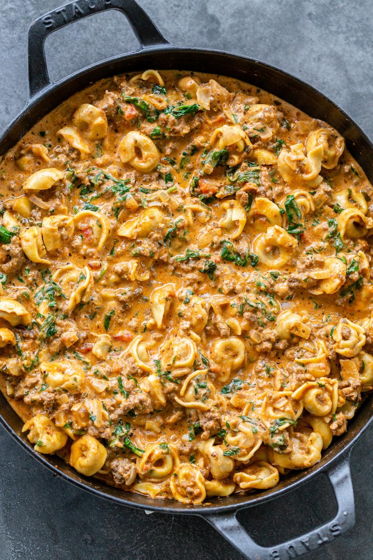 Ce plat de tortellini ne nécessite qu’une poignée d’ingrédients et une seule casserole. Si c’est facile et nécessite un minimum de vaisselle à la fin, je suis toujours pour !