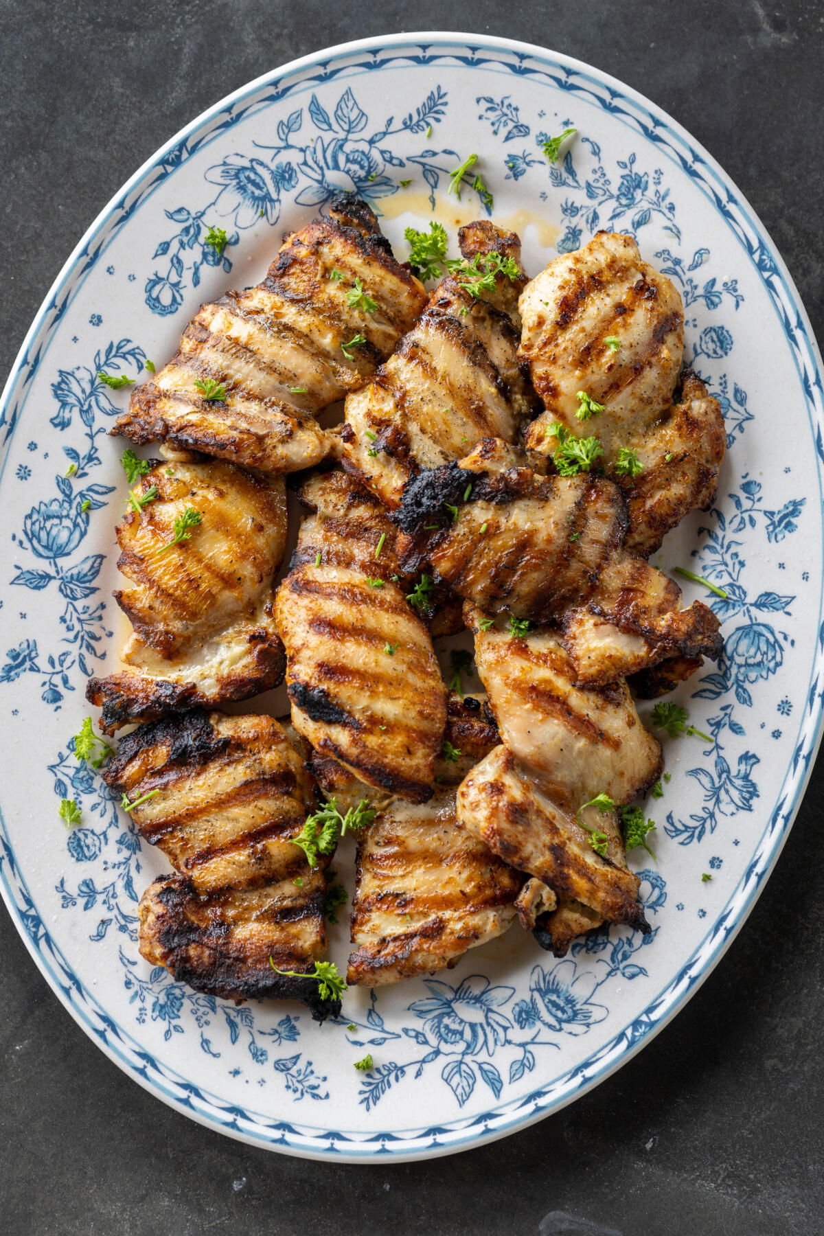 Ces cuisses de poulet grillées ressortent toujours tendres et juteuses – et le secret réside dans la marinade. C’est mon plat de réception préféré, et les enfants les adorent aussi !